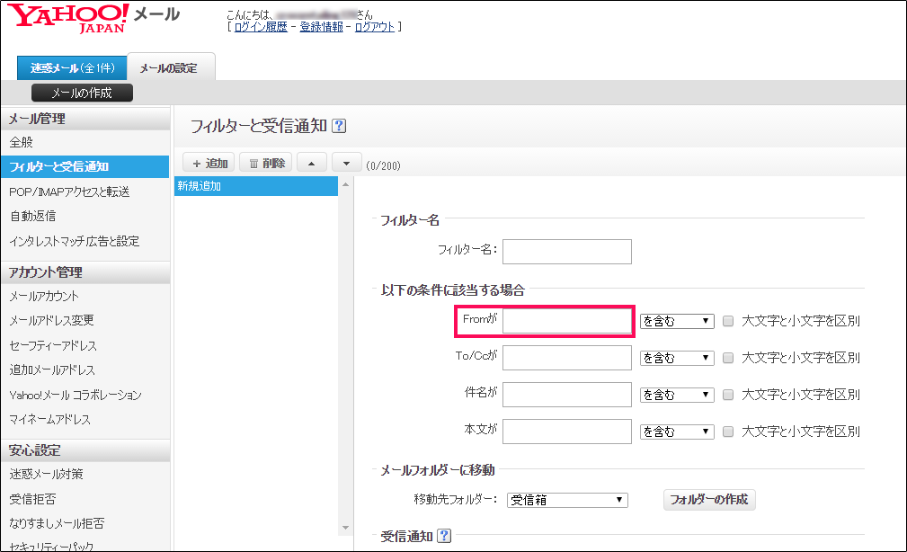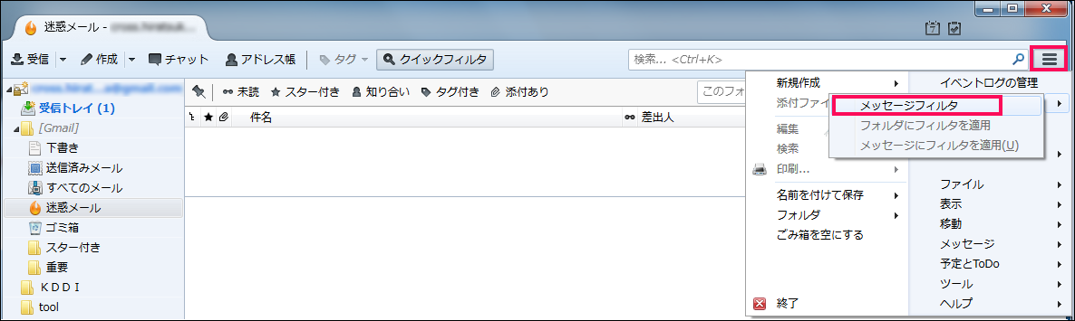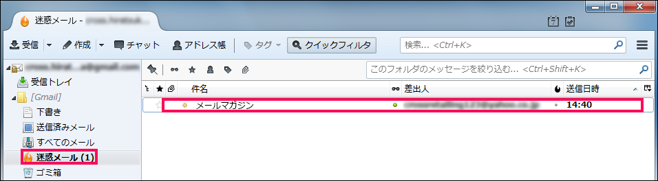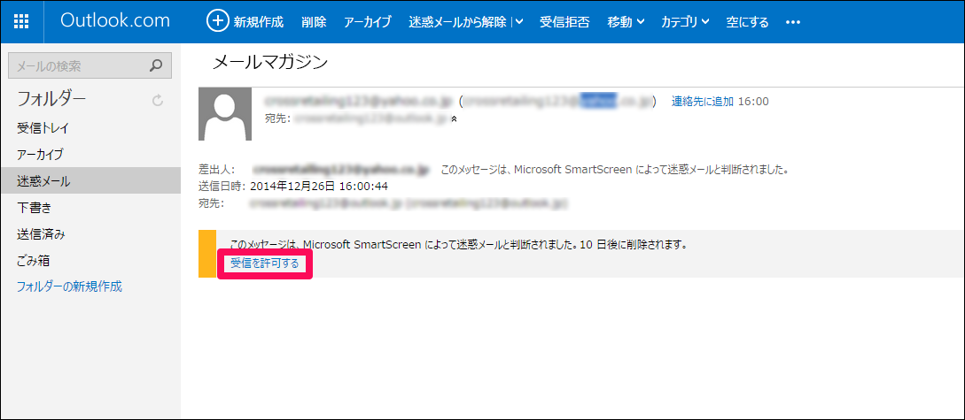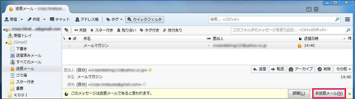 メールが迷惑メールフォルダに入ってしまっていたら、メールを開き、