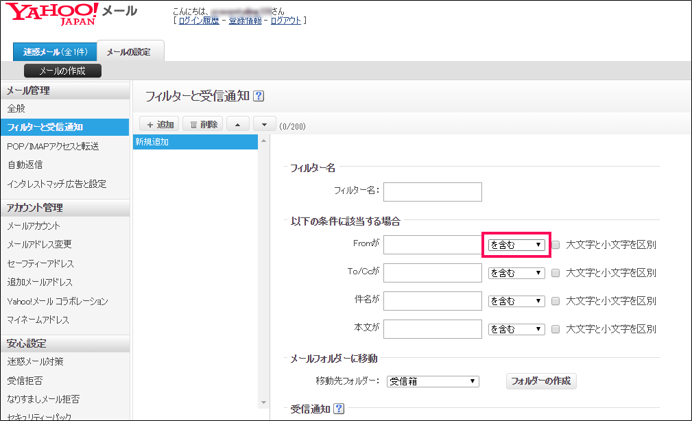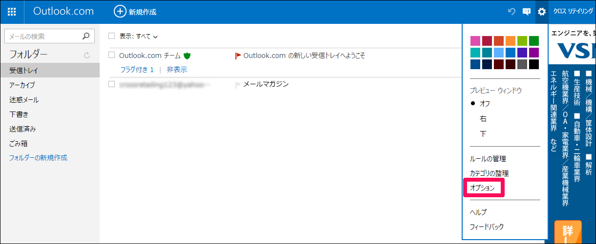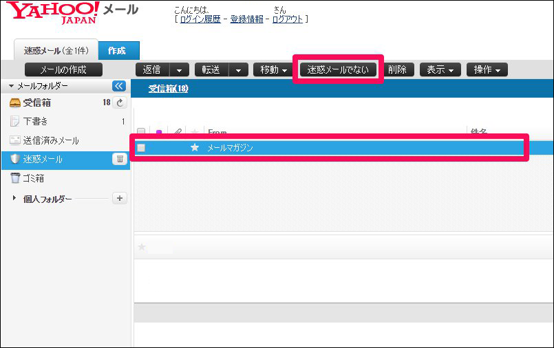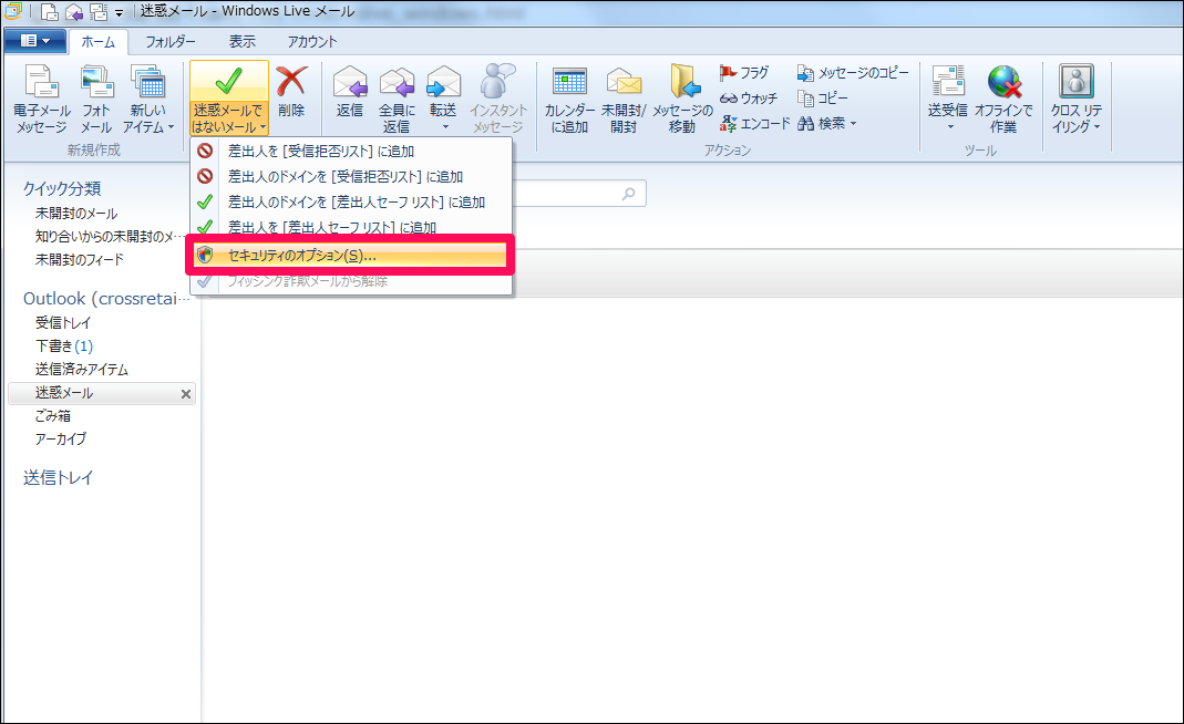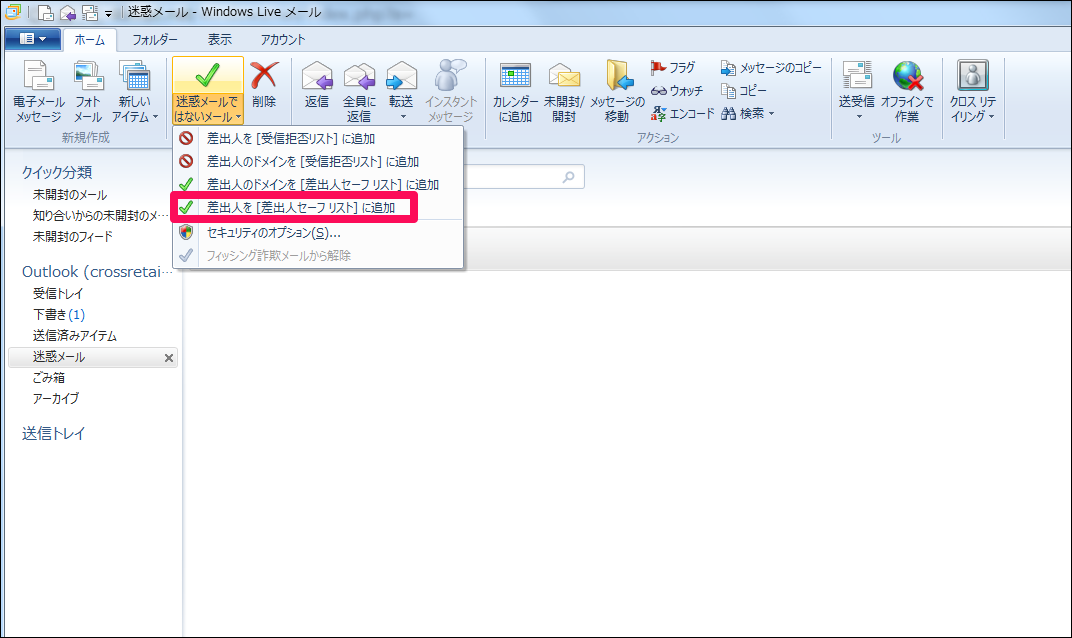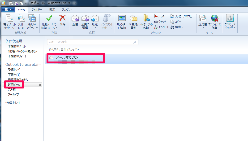 メールが迷惑メールフォルダに入ってしまっていたら、メールを選択し、