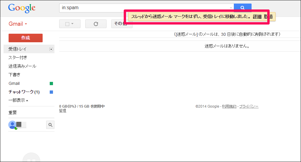 スマホ版Gmailで「迷惑メールではない」報告をする
