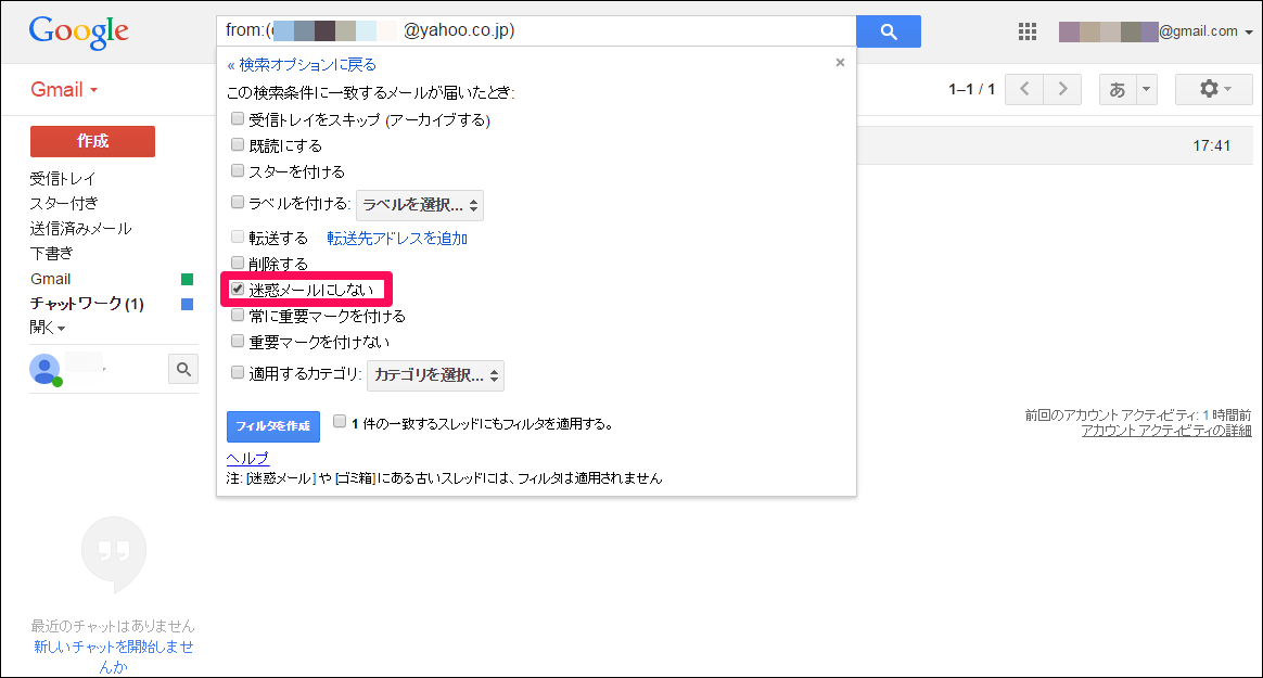 数クリックで完了する設定ですので、今後メールが迷惑メールフォルダに入ってしまわないように、