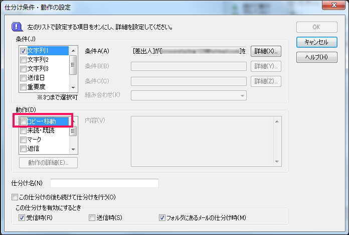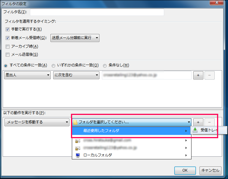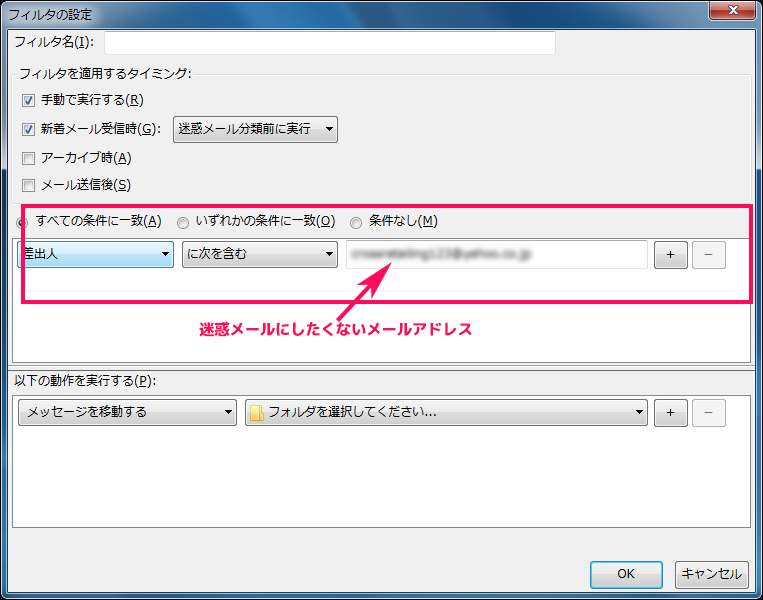 正しくメールが届くように、「迷惑メールでない」ボタンをクリックした後に振り分け設定も必ず行いましょう。